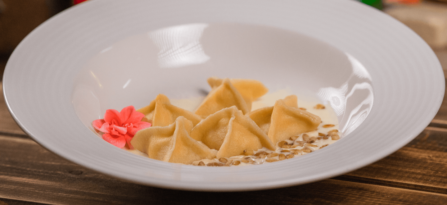 Десертные равиоли с сыром и изюмом в сливочном соусе